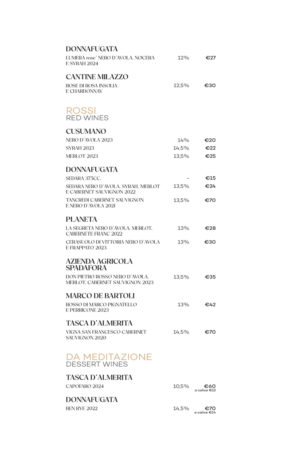 Esplora l’eccellenza vinicola siciliana con la nostra selezione di vini locali, che spaziano dai corposi rossi dell’Etna ai bianchi aromatici della costa occidentale.